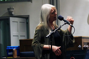 “La Barbara’s solo work, ‘Solitary Journeys of the Mind,’ conjured the primal hum of an entire new universe created solely with her vocal techniques. Her piece transformed from a hopeful sacred chant to the emotional chaos of birth and death, with fluctuating vocal tones and unconventional vocabulary morphing to express love and loss without saying an actual word.”